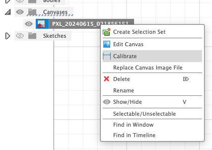 The most important part of this process is calibrating the image. Users should right-click on the canvas in the left-hand view menu and select the calibrate option. They can then select two points on the canvas and enter the length of that line in Autodesk Fusion. This is why it’s crucial to have carefully measured at least one length on the template during the prototyping phase. After inputting that measurement, all other lines drawn to trace the template outline will be accurate.