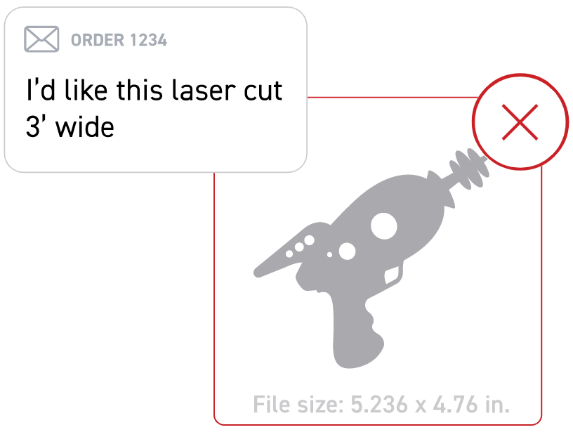 - if the units do not match, our system will register your overall part size incorrectly and notify the part is too small for us to cut